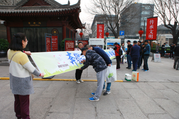 早晨七点半,全体员工准时到达安远门集合点,纷纷在横幅上签字誓师,发扬坚持到底的精神,积极参加长跑,认真锻炼身体。