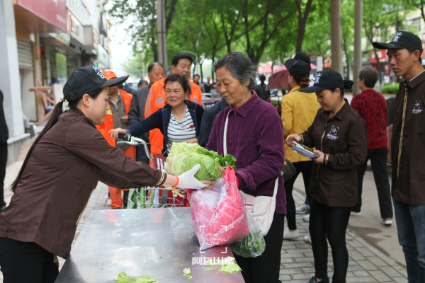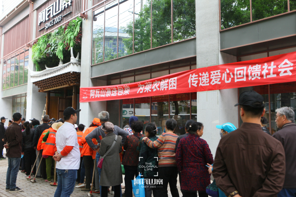4月25日至27日,阿瓦山寨咸阳总店开业前夕,总部了解到今年菜花滞销的情况后,为切实帮助菜农解困,回馈社会,认购了大批“爱心菜花”,并组织多名工作人员在咸阳店门前向路过市民免费发放。
