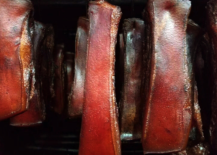 美味需要时间来发酵,当你赋予他们更多关心,收获时就会得到更多惊喜。而樟茶山窑熏腊肉正是在阿瓦人悉心照料下,每当开窑都是一次华丽蜕变。这次随行考察团首先到达的就是阿瓦山寨樟茶山窑熏腊肉生产工厂,观摩了腊肉的制作全过程。