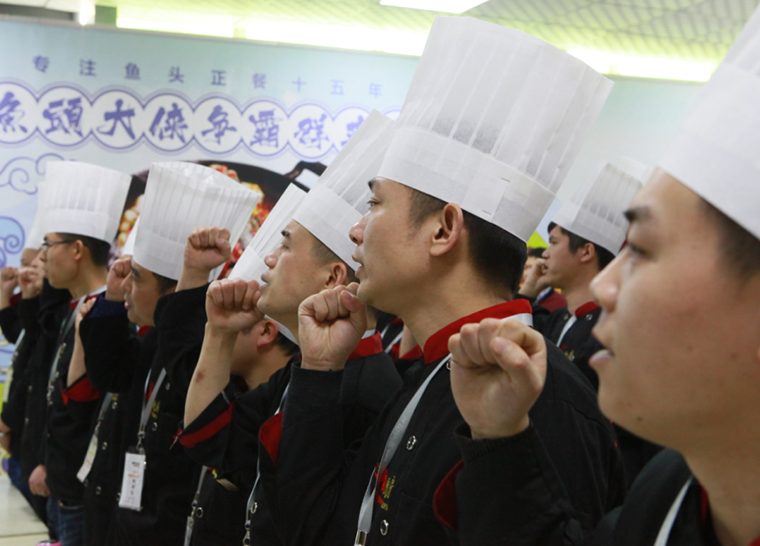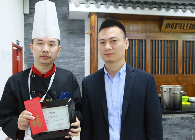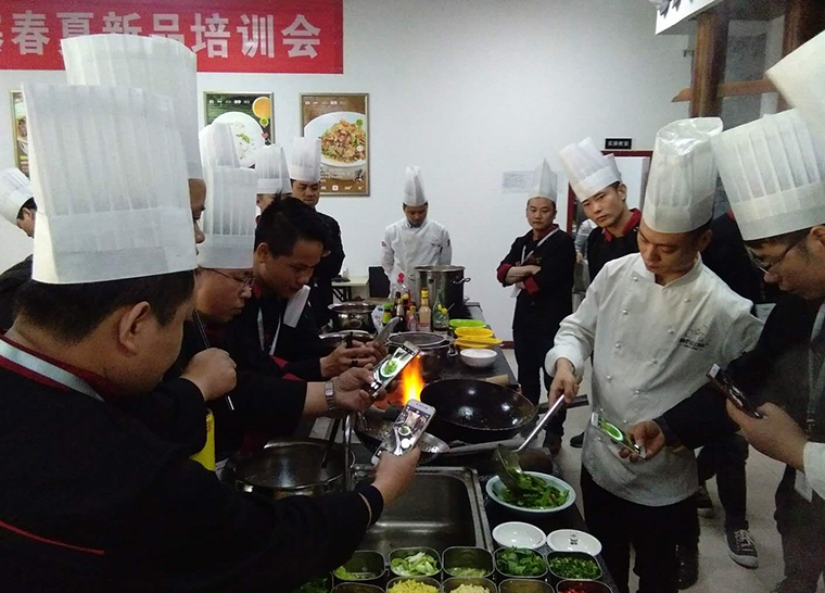 而阿瓦山寨的厨师们将作为这份荣耀的制造者,他们进行专业培训与考核,将这份美味传承并传达出去。今天这里的每一位厨师在经过研发总监李九高先生的亲自指导示范后,都将带着自信进行实操考核,他们知道这不仅是考核,而是一场火焰与食材展现的魔术,经过他们那双娴熟操作的手,最普通的食材也将发生华丽变身。那是将要呈于餐桌,完成作为食物最荣耀的时刻。
