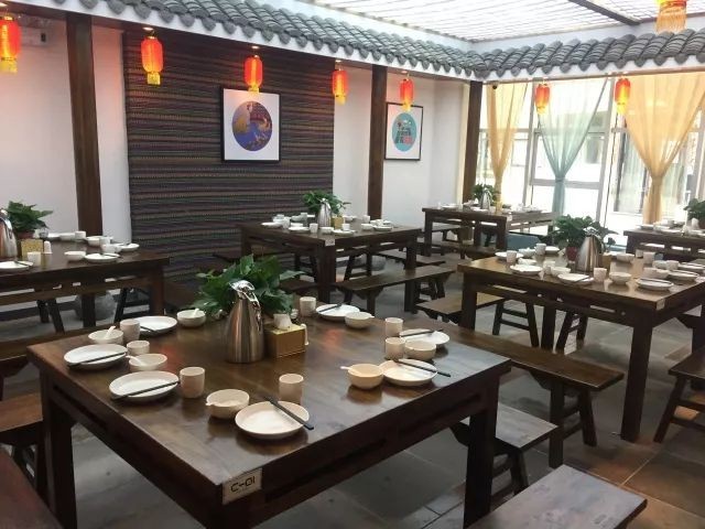 宽敞舒适的空间设置,配合西南民族特色,主色调为绿色的原生态环保门头,融合现代极简主义,以原生态的拙朴野趣体现西南民族特有的精神文化和人文秩序,仿佛置身山寨之中。