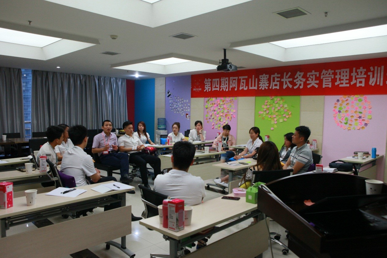 5月19日第四期阿瓦山寨店长务实管理培训班开课啦!经过前一天的拓展训练,各位店长彼此之间更加默契,更加团结!
