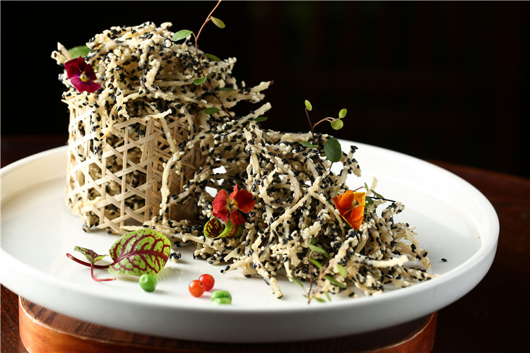 莲藕细细的切丝,下水漂去淀粉,裹上芝麻后下锅炸,香酥脆爽,可做菜亦可做零食。