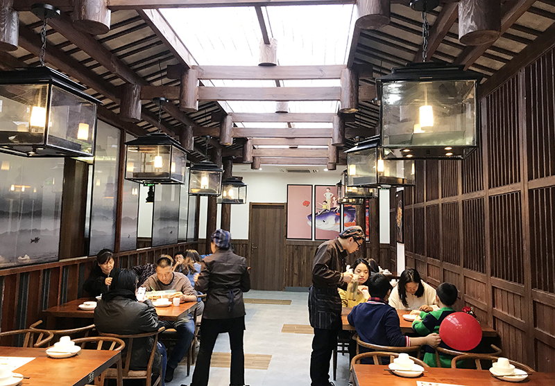 进门就能看见阿瓦山寨的招牌鱼头,咽一下口水,快跟着山妹子往里走!