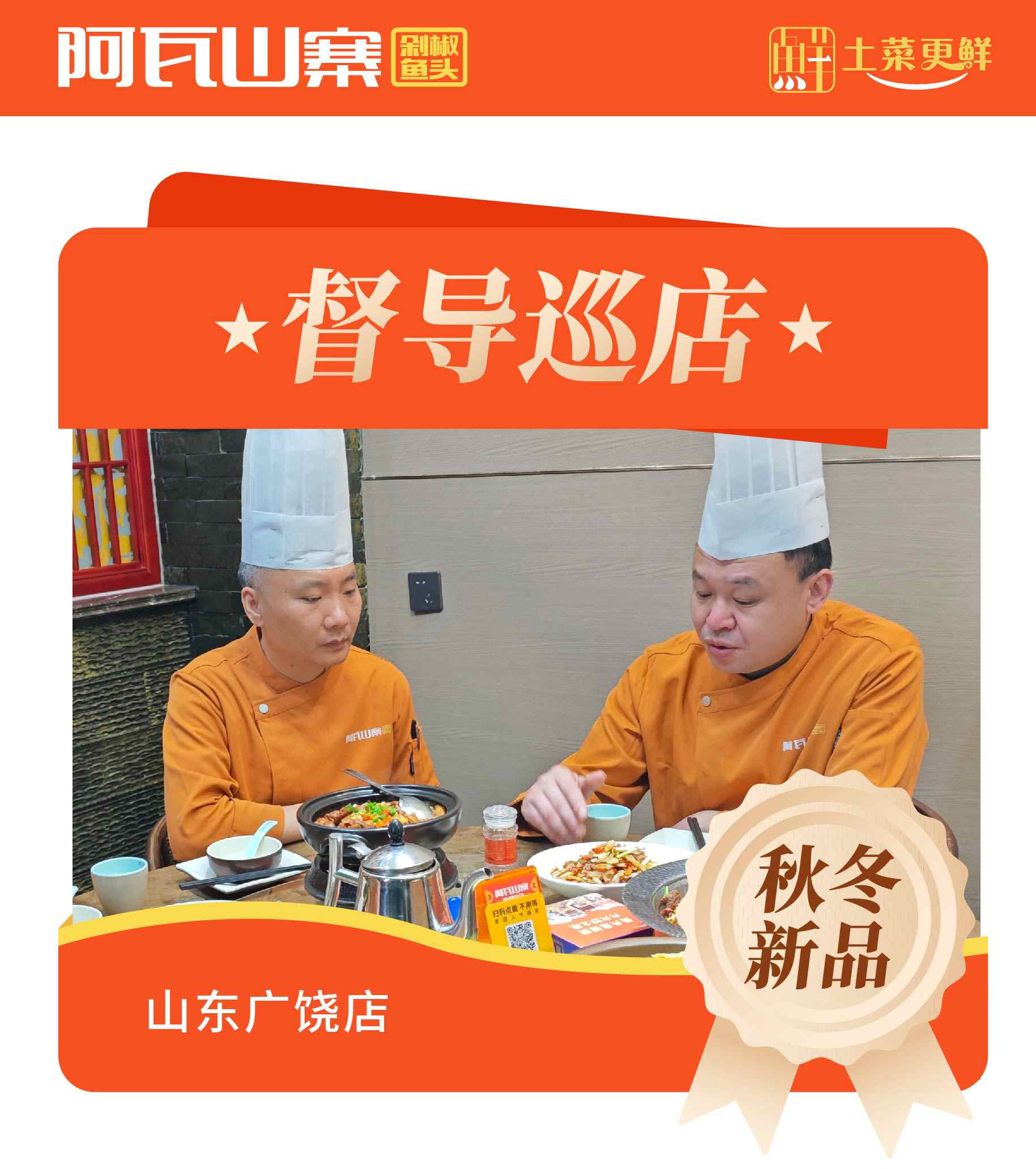 近日阿瓦山寨厨政督导抵达山东广饶店开展秋冬新品情况检查 督导人员围绕新品食材处理标准、烹饪流程规范及口味稳定性展开细致核查,现场指导门店厨务人员优化操作细节