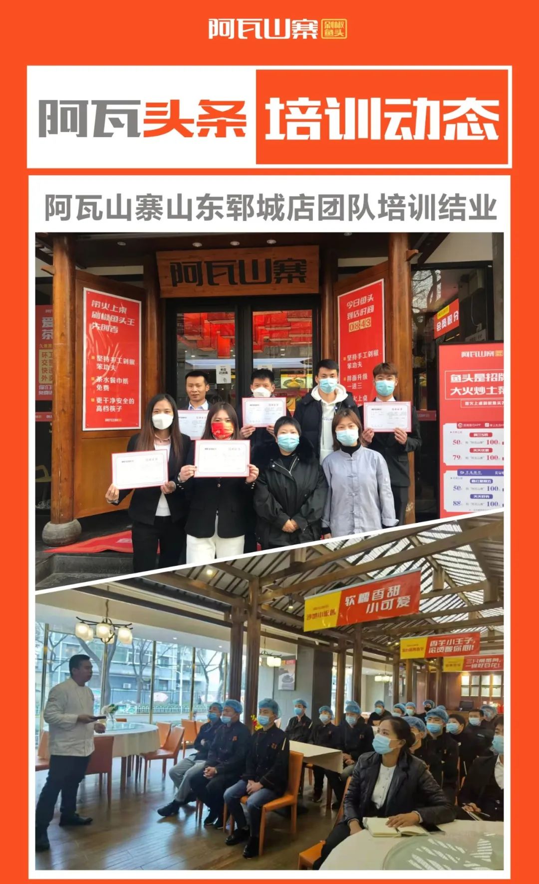 2021年12月17日,经过规范的理论和实操培训,严格考核,阿瓦山寨两家新加盟门店——山东省菏泽郓城店管理及厨师团队、