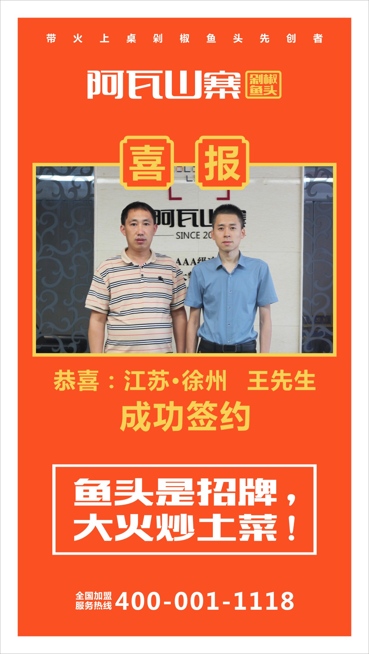 恭喜江苏省徐州市鼓楼区奔腾路店-- 王总签订阿瓦山寨特许加盟合同